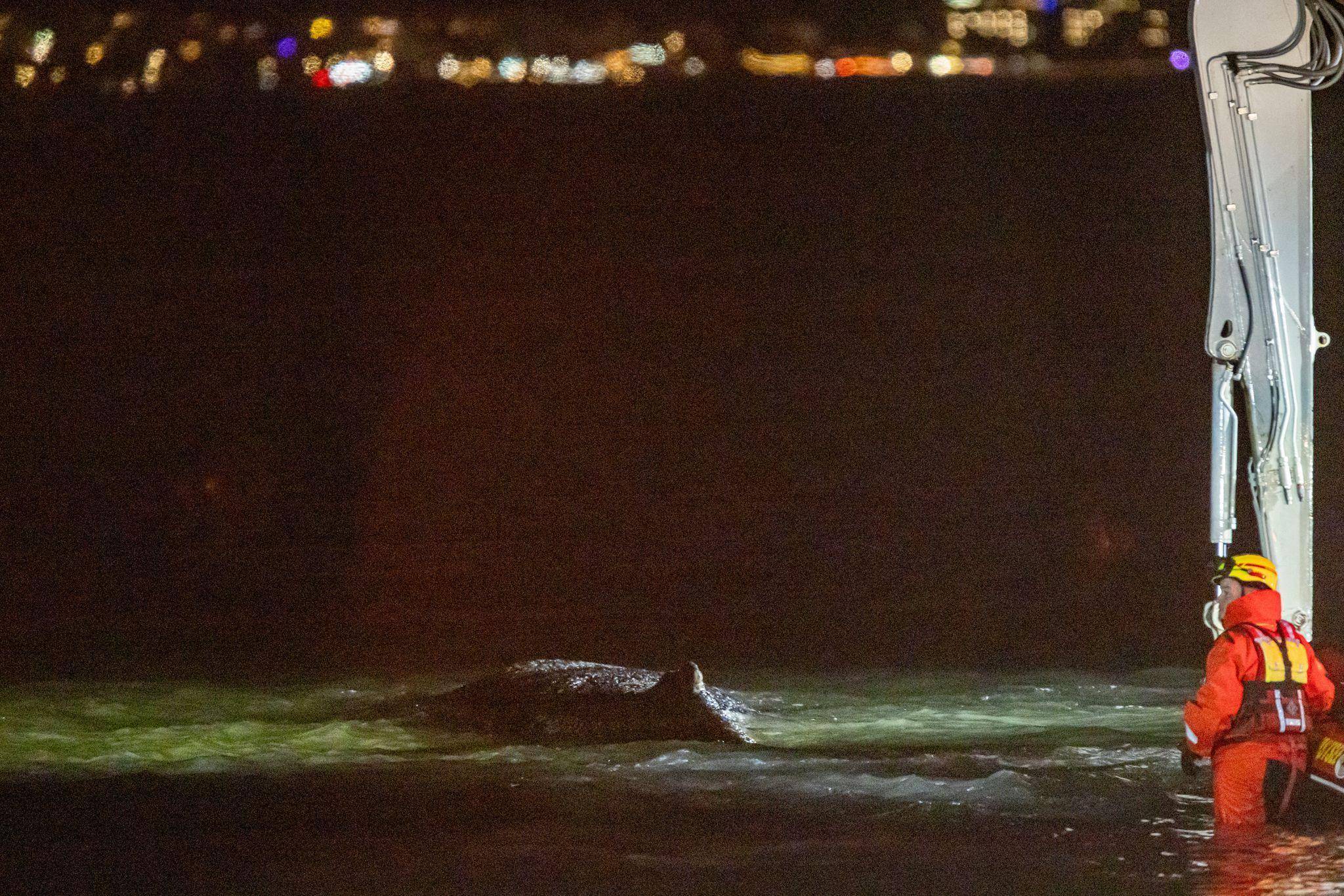 Eigentlich sollten die Rettungsversuche am Donnerstag bereits bei Sonnenuntergang eingestellt werden, doch dann begann sich das tonnenschwere Tier doch noch zu bewegen. Die Aktion war wegen der Dunkelheit schließlich aber zu gefährlich. Deshalb beendete Partheil-Böhnke die Versuche. Gleich am frühen Morgen sollen sie weitergehen.