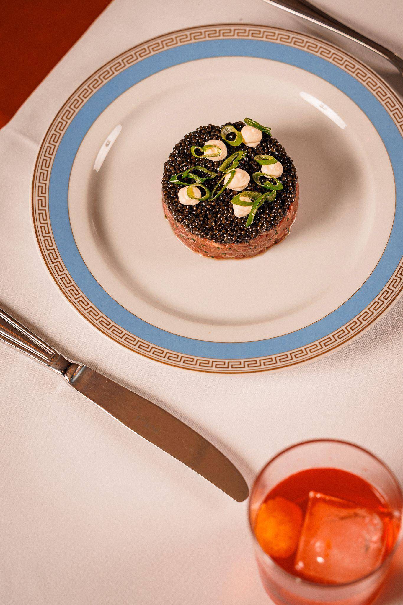 Unter dem Motto «nicht kleckern, sondern klotzen» serviert Julius Nowak, Küchenchef im Berliner Restaurant «Maison Papillon» sein Beef Tatar mit einer kompletten Kaviar-Schicht des Osietra-Störs. Die etwa 2 Millimeter dicken und festen Körnchen sind bekannt für ihr intensiv-nussiges Aroma. «Die Idee dahinter ist, dem cremigen, leicht eisenhaltigen rohen Fleisch durch den Kaviar eine besondere Würzung zu geben. Er verleiht dem Tatar durch seine jodige Salzigkeit und Fischigkeit eine spezielle Note - ein Duo, das perfekt harmoniert», erklärt Nowak.