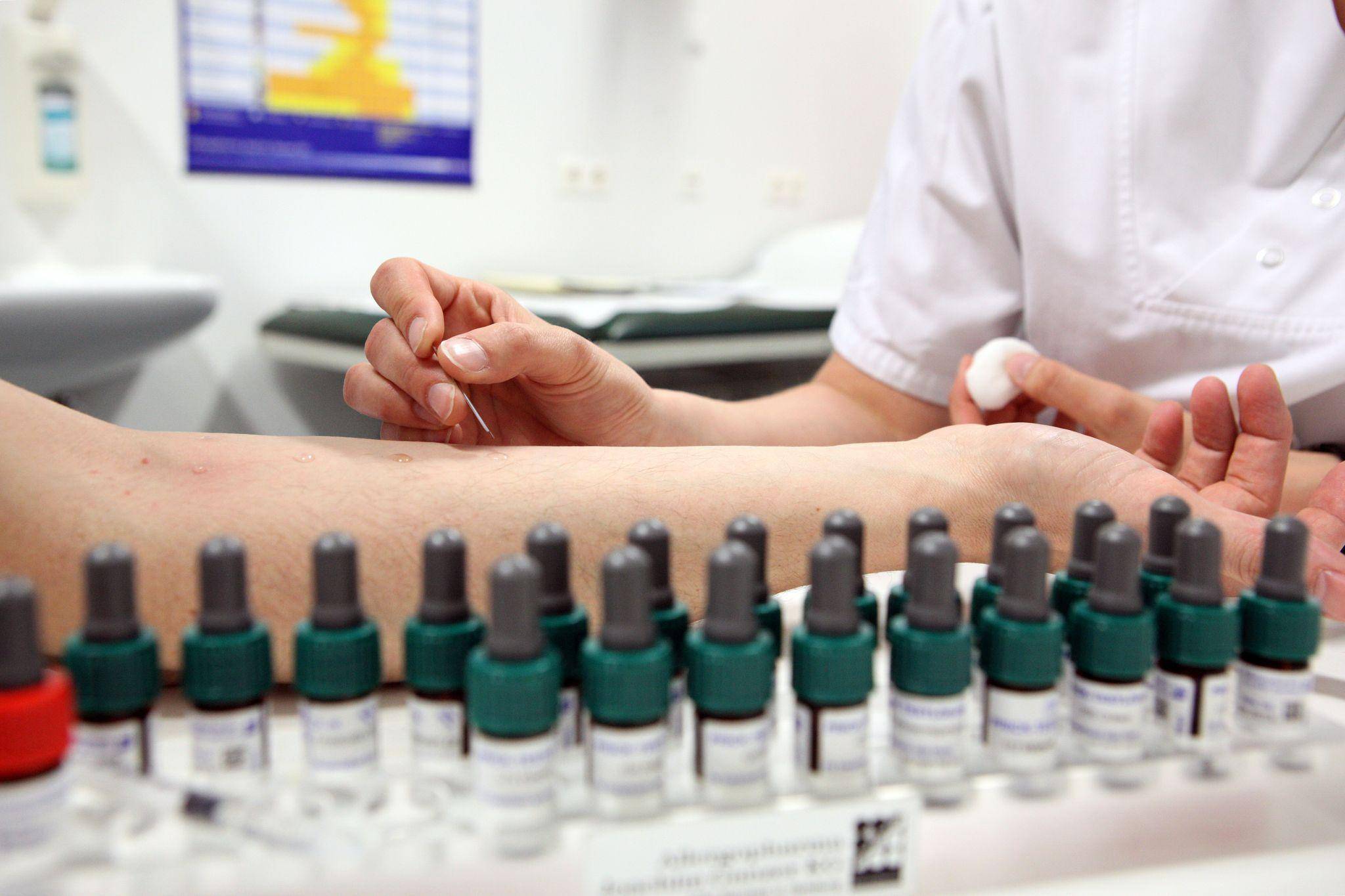 Bei der Diagnostik führt Arzt oder Ärztin in der Regel einen sogenannten Prick-Test durch - bringt also Lösungen mit verschiedenen Allergenen in die Haut ein. Liefert diese Untersuchung kein klares Ergebnis, schließt sich eine Blutuntersuchung an. Dabei wird geprüft, ob darin bestimmte Antikörper nachweisbar sind.